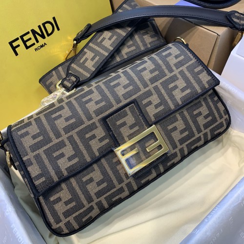 펜디 바게트백 미듐 패브릭 캔버스 브라운 8BR600A6V5F17U4