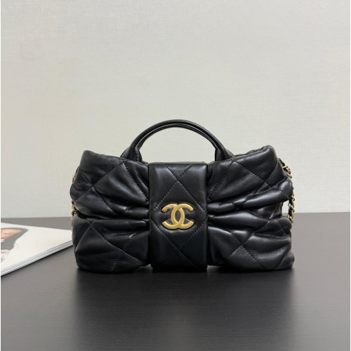 샤넬 25FW 25K 리본백 미니 보우백 CC로고 체인 램스킨 블랙 골드 AS5849