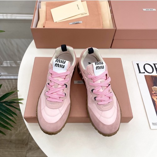 미우미우 테크니컬 스웨이드 스니커즈 핑크 5E417E