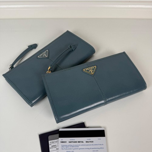 프라다 가죽 파우치 은장 금장 블루 1MB051