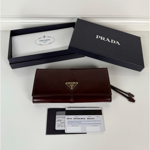 프라다 삼각로고 사피아노 레더 장지갑 금장 은장 와인 1MH132