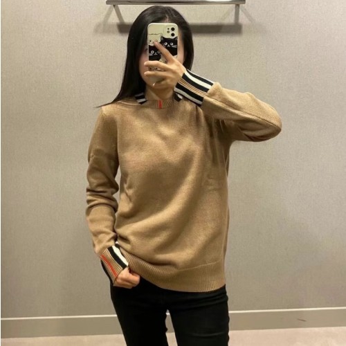 버버리 Eyre 체크 울 캐시미어 여성 니트 카멜 80910381 F