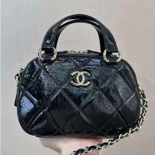 샤넬 미니 볼링백 블랙 샤이니 크럼플드 카프스킨 골드메탈 AS5536
