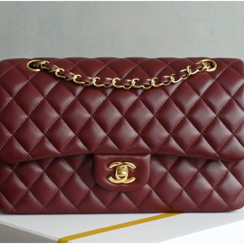 샤넬 클래식 미듐 레드 금장 플랩백 A01112