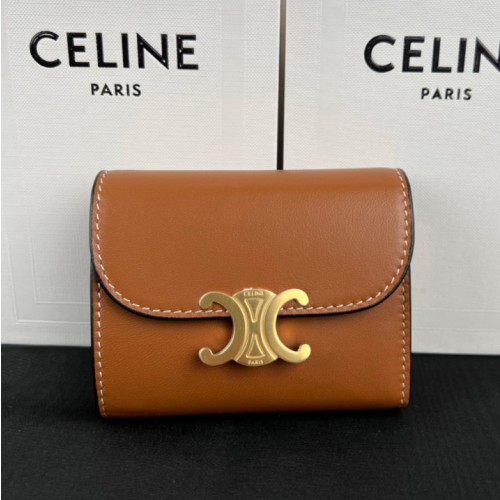 셀린느 샤이니 카프스킨 트리옴페 스몰 플랩 여성 지갑 카멜 10D783DPV
