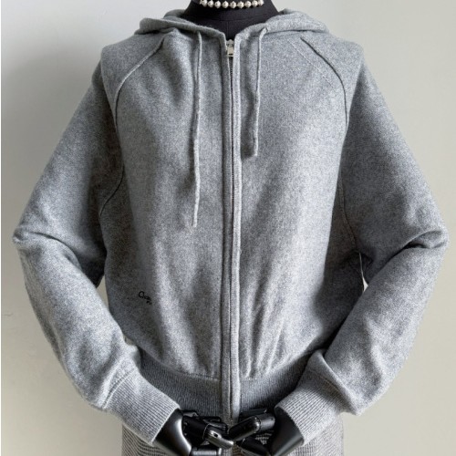 디올 캐시미어 후드 지퍼 니트 가디건 그레이 614G06B0041_X8930 H