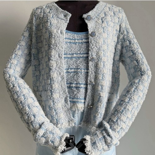 샤넬 26C 크루즈 트위드 자켓 숄 카라넥 숏 재킷 크롭 코튼 블루 P80823 H