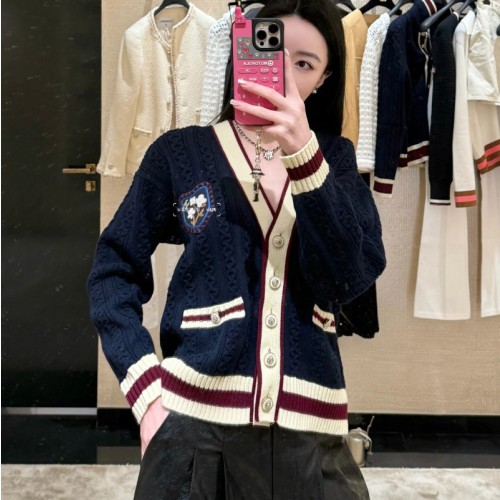샤넬 26C 크루즈 캐시미어 가디건 브이넥 CC로고 패치 P81052 H > 카디건