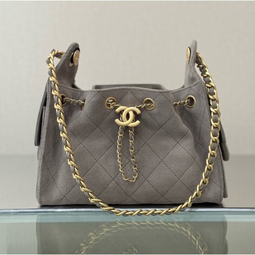 샤넬 26C 크루즈 25백 미니 스웨이드 CC 체인 호보백 그레이 골드 메탈 AS5631 > 숄더백