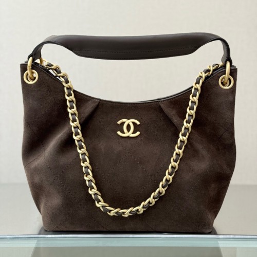 샤넬 26C 크루즈 스웨이드 호보백 라지 체인 탑핸들 퀼팅 브라운 골드 메탈 AS5970 > 숄더백