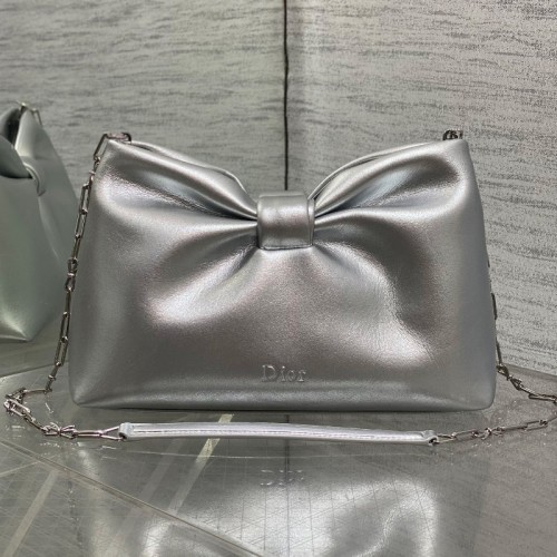 디올 보우 리본 백 미디엄 램스킨 실버 M0714OUQO_M900