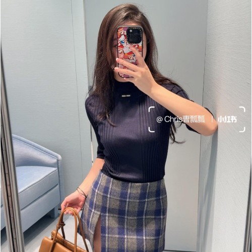 • 미우미우니트 골지 니트 울 스웨터 네이비 MML02L  H