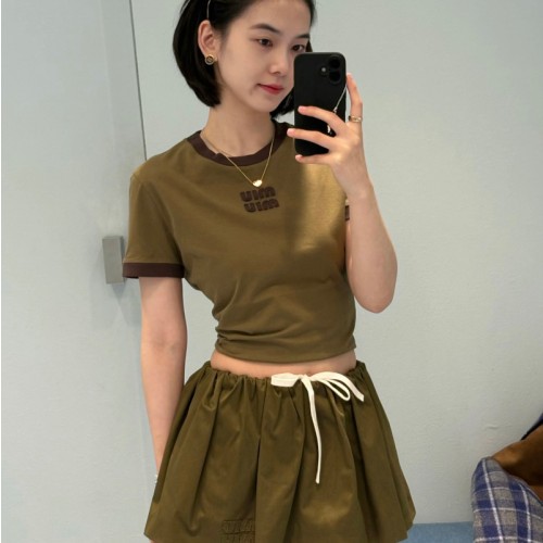 • 미우미우 반팔 티셔츠 밀리터리 카카오 MJNA15 D